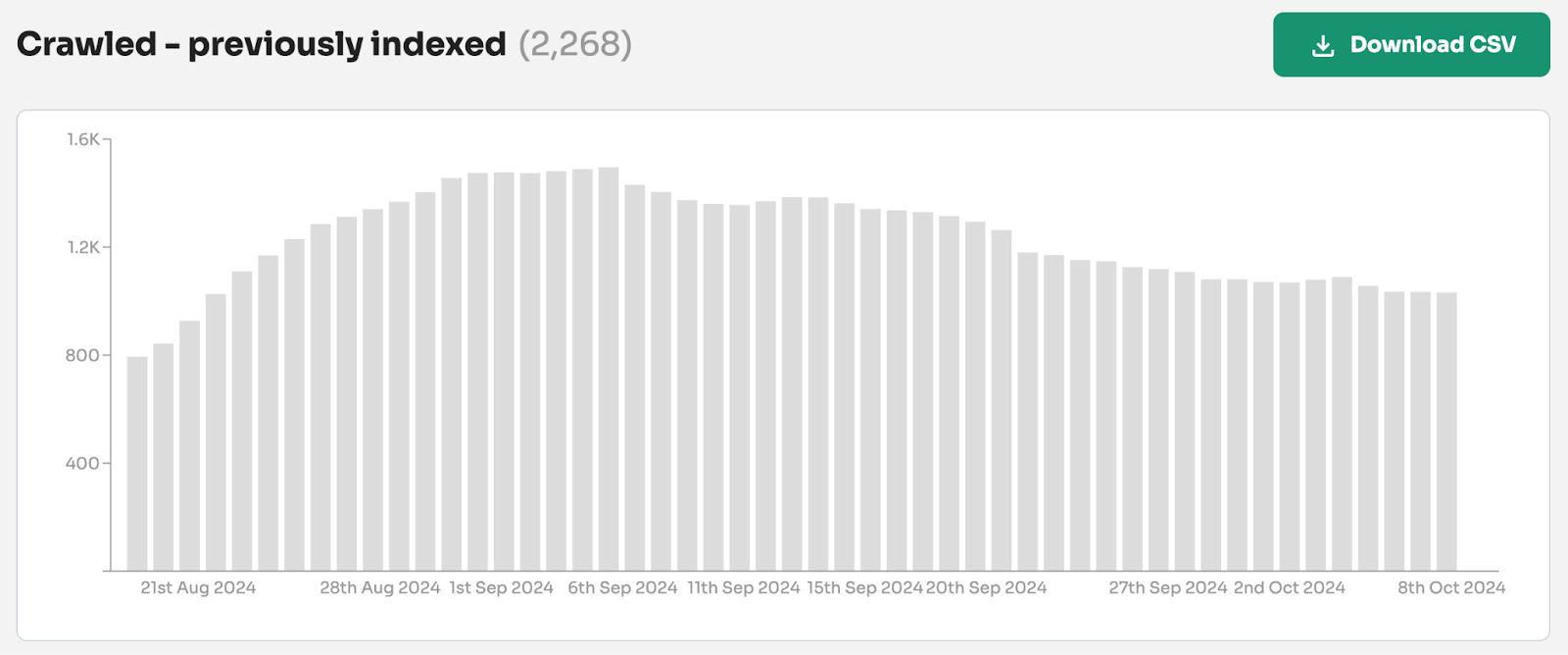 Again, with Indexing Insight we monitor when a page switches from indexed to not indexed. And the date it switched. In this case, it was 12th August 2024.