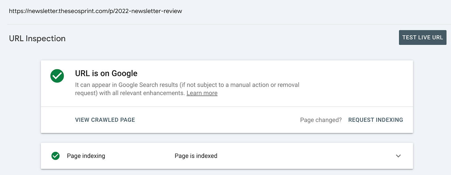 In this newsletter, I’ve provided evidence that just because a page has this status in GSC does not mean that it was never indexed. In fact, quite the opposite.